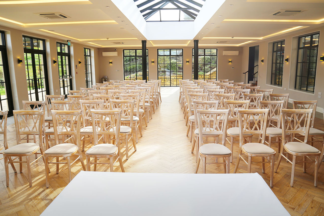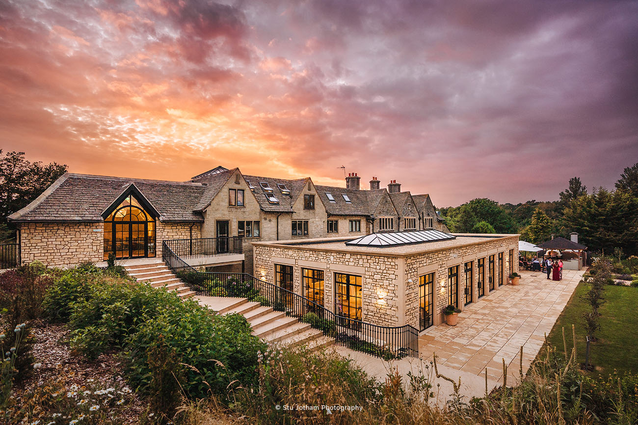 Situated in a 400-year-old former vicarage, The Pear Tree is an exclusive-use venue surrounded by seven acres of English countryside in the heart of Wiltshire. With 18 bedrooms spread across The Pear Tree’s historic buildings, lush landscapes and a private vineyard, the venue features a formal dining space in the Orangery. There’s also a covered outdoor terrace and kitchen and a separate bar and lounge with a dance floor.